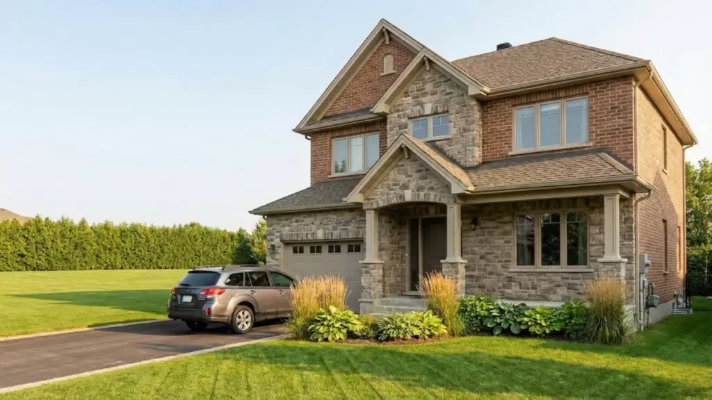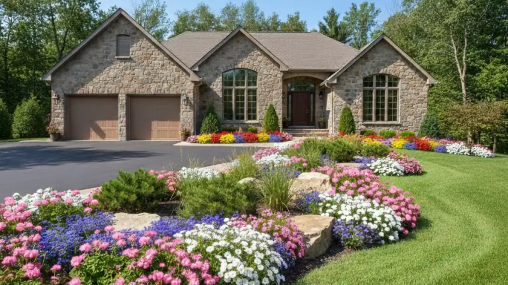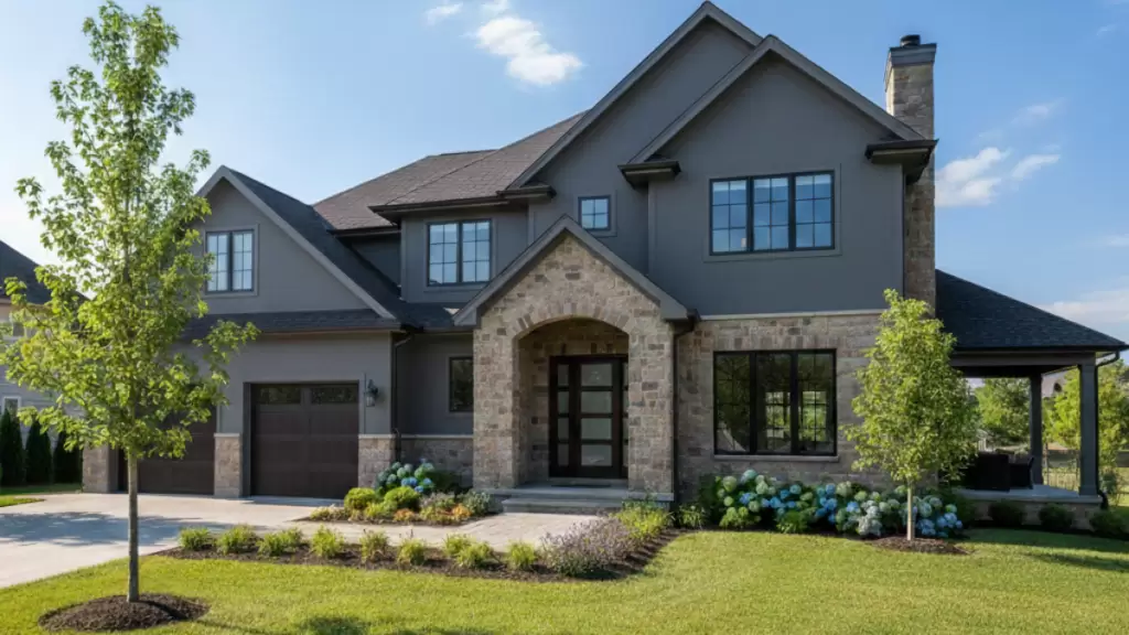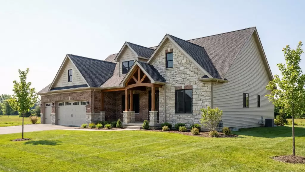 Approved Material Synergy: This residence is fully compliant, utilizing a high-quality blend of natural stone and brick to meet the design review standards.