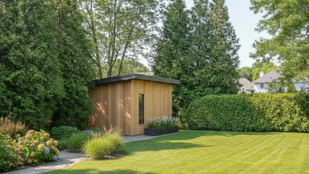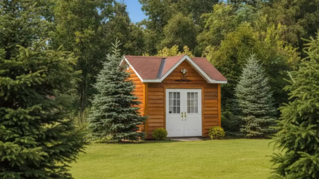 Approved Installation: By using real wood and placing the structure behind natural tree screening, this shed successfully meets all community architectural standards.