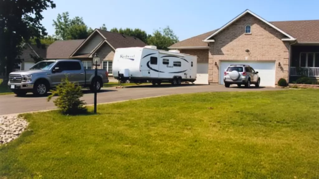 The permanent driveway storage of large recreational vehicles and trailers significantly impacts the cohesive streetscape and architectural finishing of the neighborhood. To preserve property values and clear sightlines, these items must be relocated to an off-site storage facility.